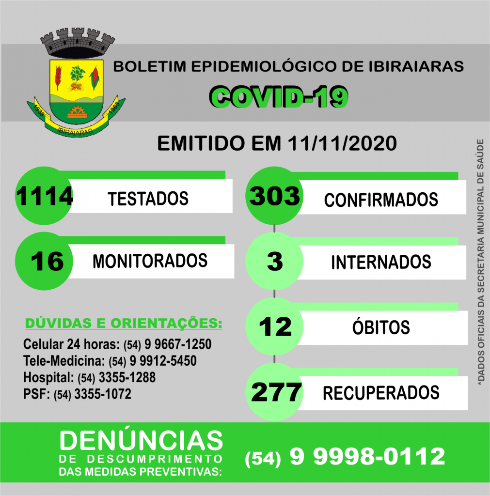 BOLETIM EPIDEMIOLÓGICO Publicado em 11 de novembro de 202011 de novembro de 2020 por Assessoria de Imprensa e Comunicação Prefeitura de Ibiraiaras 11 de novembro