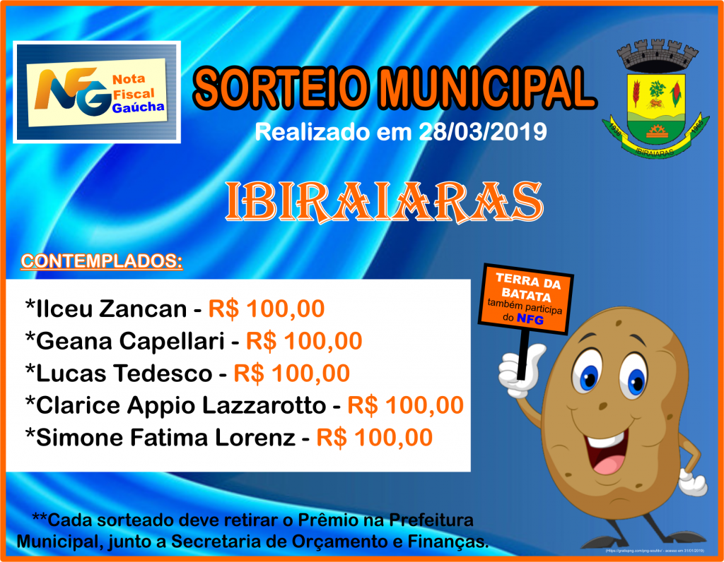 No dia 28 de março aconteceu a extração municipal do Programa Nota Fiscal Gaúcha.