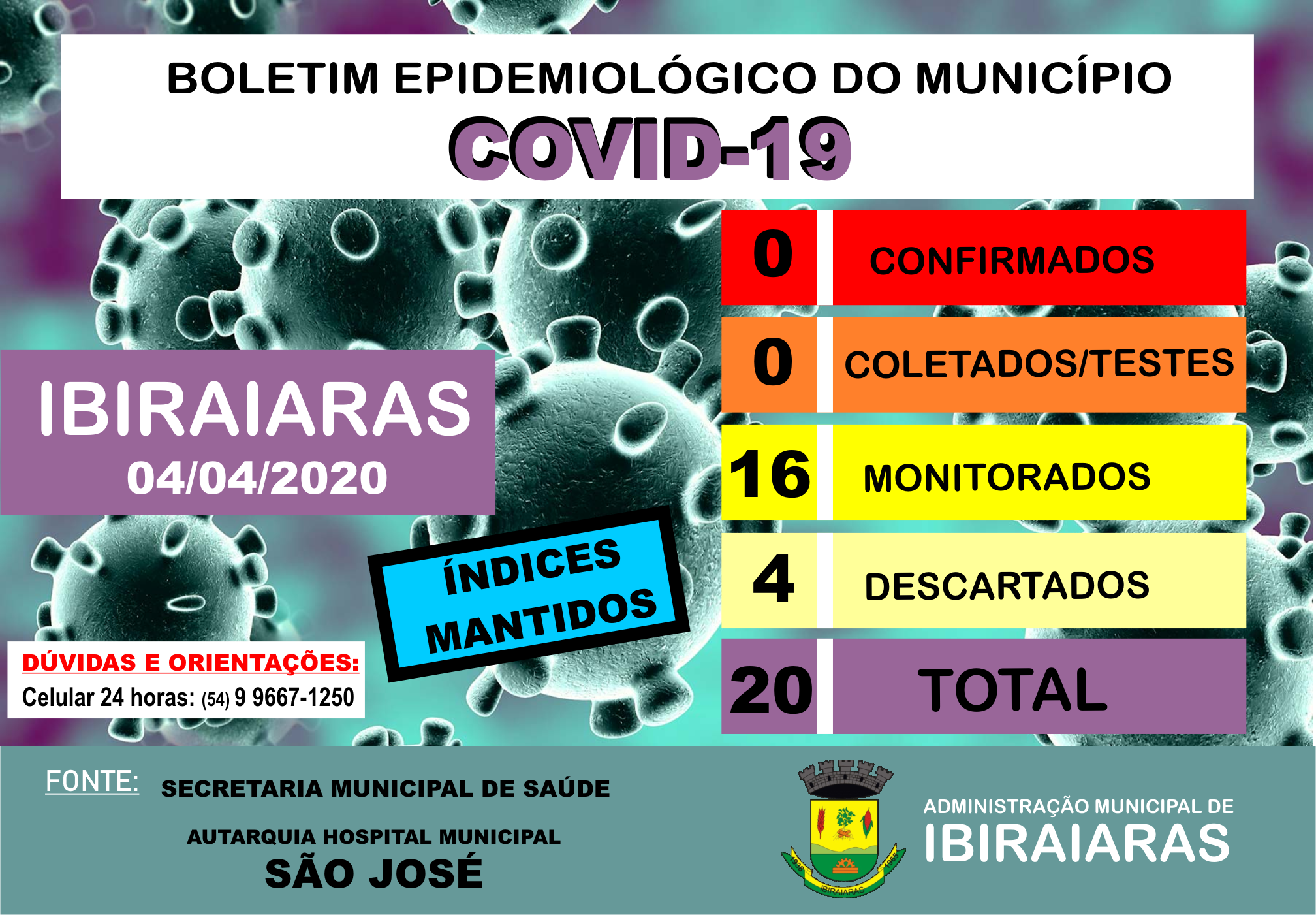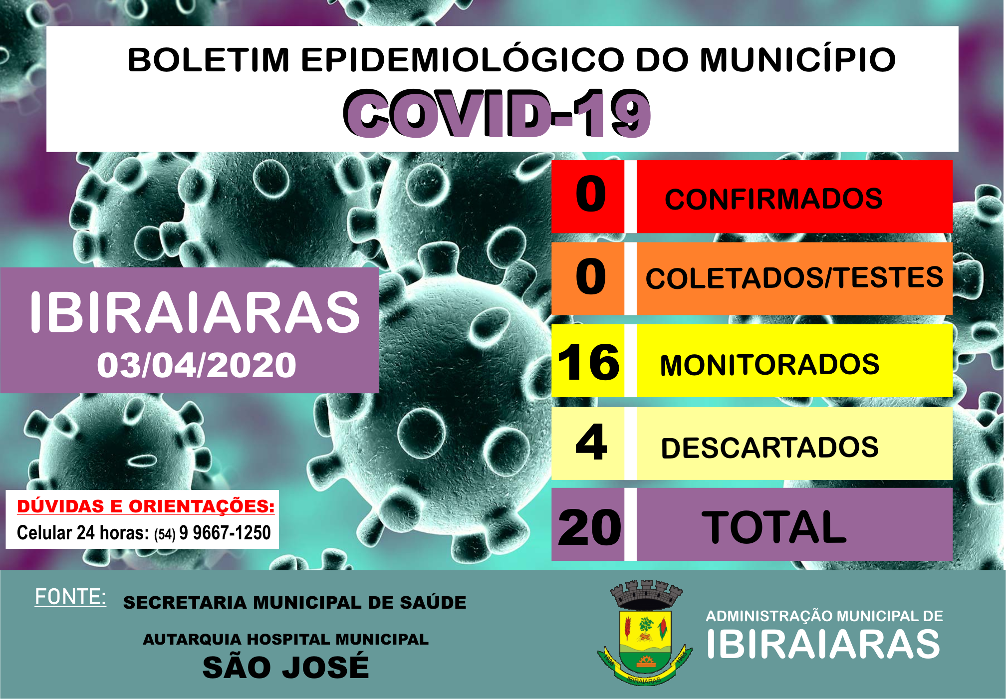 No boletim epidemiológico desta sexta-feira, 03 de abril, são 16 os casos monitorados para a COVID-19. Para dúvidas e orientações, estão disponíveis os telefones: 54 3355-1288/ 3355-1072/ 9 9667-1250 (celular …