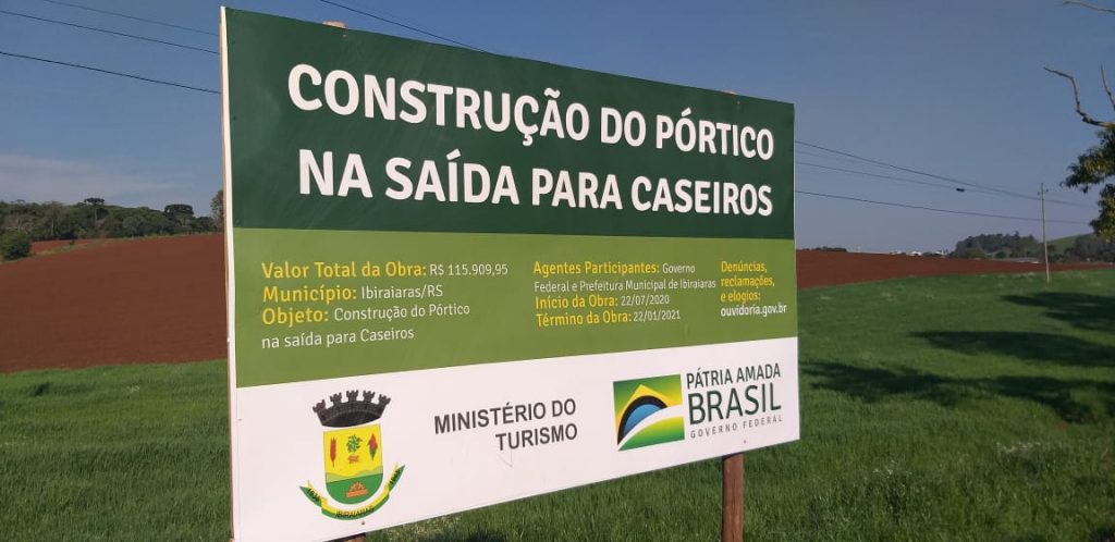 Um anseio antigo da comunidade está em pleno andamento. São os dois Portais de entrada e saída do Município, na RS 126, um deles no sentido para Caseiros e outro no sentido São Jorge.
