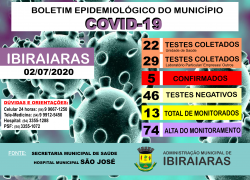 BOLETIM EPIDEMIOLÓGICO 02/07 Publicado em 2 de julho de 2020 por Assessoria de Imprensa e Comunicação Prefeitura de Ibiraiaras