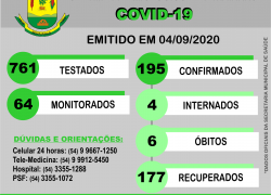 BOLETIM EPIDEMIOLÓGICO 04/09 Publicado em 4 de setembro de 2020 por Assessoria de Imprensa e Comunicação Prefeitura de Ibiraiaras