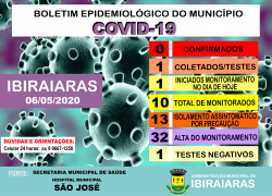 BOLETIM EPIDEMIOLÓGICO 06/05 Publicado em 6 de maio de 2020 por Assessoria de Imprensa e Comunicação Prefeitura de Ibiraiaras