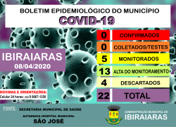BOLETIM EPIDEMIOLÓGICO 08/04 Publicado em 8 de abril de 2020 por Assessoria de Imprensa e Comunicação Prefeitura de Ibiraiaras