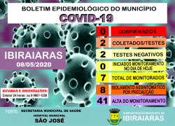 BOLETIM EPIDEMIOLÓGICO 08/05 Publicado em 8 de maio de 2020 por Assessoria de Imprensa e Comunicação Prefeitura de Ibiraiaras