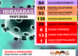 BOLETIM EPIDEMIOLÓGICO 10/07 Publicado em 10 de julho de 2020 por Assessoria de Imprensa e Comunicação Prefeitura de Ibiraiaras
