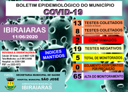 BOLETIM EPIDEMIOLÓGICO 11/06 Publicado em 11 de junho de 2020 por Assessoria de Imprensa e Comunicação Prefeitura de Ibiraiaras