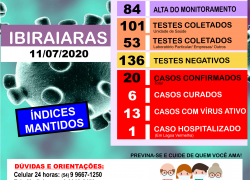 BOLETIM EPIDEMIOLÓGICO 11/07 Publicado em 11 de julho de 2020 por Assessoria de Imprensa e Comunicação Prefeitura de Ibiraiaras