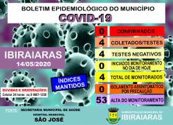 BOLETIM EPIDEMIOLÓGICO 14/05 Publicado em 14 de maio de 2020 por Assessoria de Imprensa e Comunicação Prefeitura de Ibiraiaras