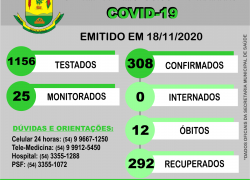BOLETIM EPIDEMIOLÓGICO 18/11 Publicado em 18 de novembro de 2020 por Assessoria de Imprensa e Comunicação Prefeitura de Ibiraiaras