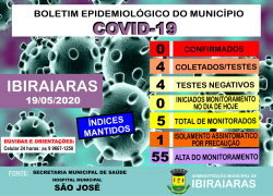BOLETIM EPIDEMIOLÓGICO 19/05 Publicado em 19 de maio de 2020 por Assessoria de Imprensa e Comunicação Prefeitura de Ibiraiaras
