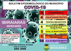 BOLETIM EPIDEMIOLÓGICO 20 05 Publicado em 20 de maio de 2020 por Assessoria de Imprensa e Comunicação Prefeitura de Ibiraiaras