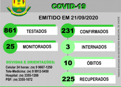 BOLETIM EPIDEMIOLÓGICO 21/09 Publicado em 21 de setembro de 2020 por Assessoria de Imprensa e Comunicação Prefeitura de Ibiraiaras