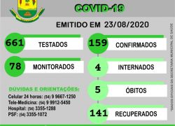 BOLETIM EPIDEMIOLÓGICO 23/08 Publicado em 24 de agosto de 2020 por Assessoria de Imprensa e Comunicação Prefeitura de Ibiraiaras