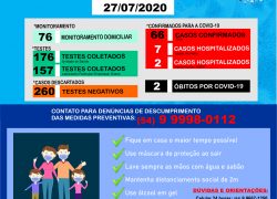 BOLETIM EPIDEMIOLÓGICO 27/07 Publicado em 27 de julho de 2020 por Assessoria de Imprensa e Comunicação Prefeitura de Ibiraiaras