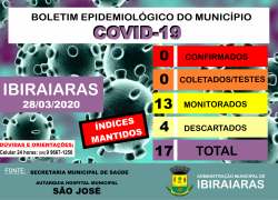 BOLETIM EPIDEMIOLÓGICO 28 03 Publicado em 28 de março de 202028 de março de 2020 por Assessoria de Imprensa e Comunicação Prefeitura de Ibiraiaras