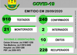 BOLETIM EPIDEMIOLÓGICO 28/09 Publicado em 28 de setembro de 2020 por Assessoria de Imprensa e Comunicação Prefeitura de Ibiraiaras