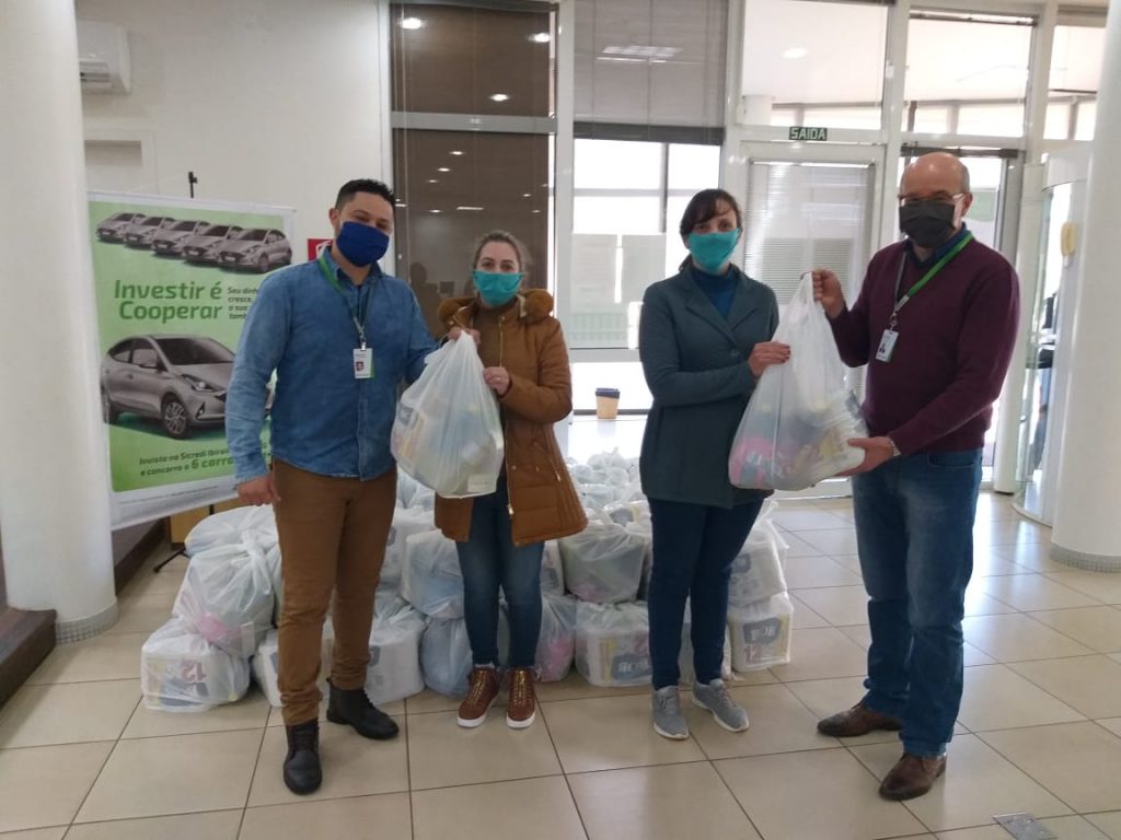 A doação foi feita pela cooperativa Sicredi e recebidas pela Secretária da pasta – Roseane Pomatti Cristianetti e pela Assistente Social – Maiara Dalmás.