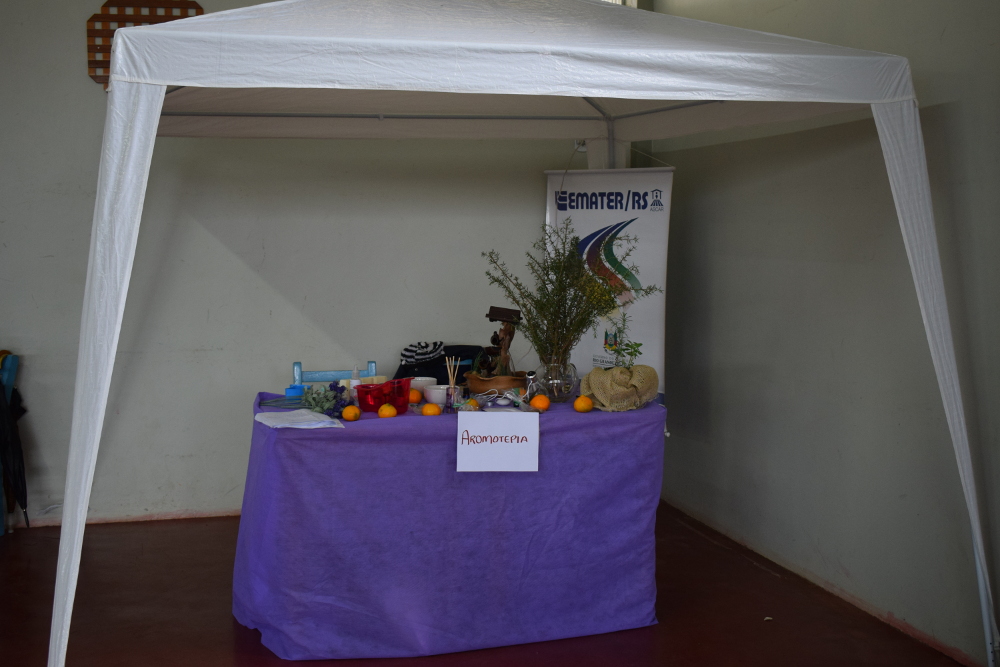 Houve também a exposição de Artesanato de Vimes, dos trabalhos da Oficinas Terapêuticas “Caminhos do Cuidado”, O GAPI – Grupo de Amigos dos Produtores de Ibiraiaras expôs alimentos orgânicos-livres de agrotóxico e sementes crioulas. Estiveram participando a Coordenação da Atenção Básica da 6ª CRS- Irde Dalmaso e Solange Protti, representante do escritório Regional da Emater – Doriana Mioto, Cintia Gris do CETAP, a Elizete representando a Empresa Junior e Curso de Farmácia da UPF.