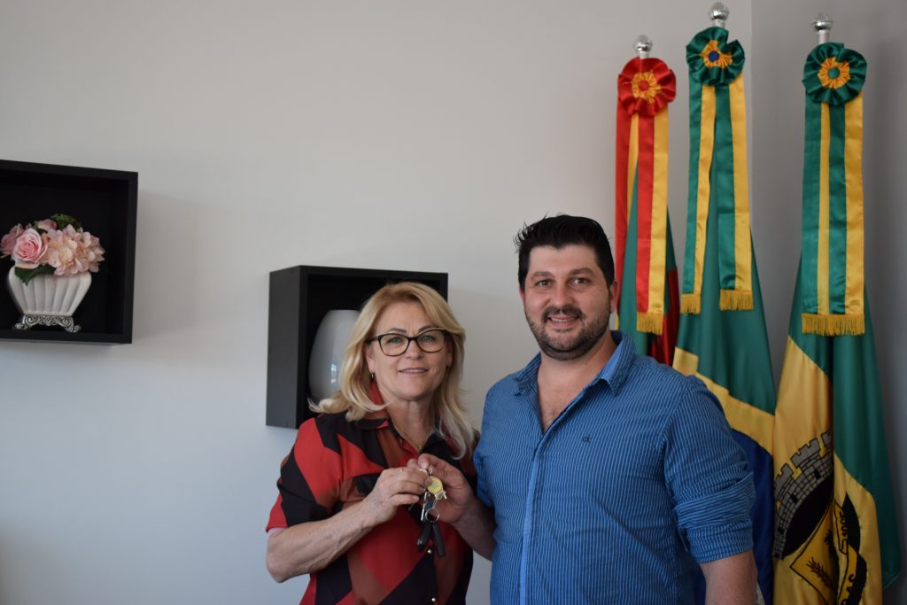 Em virtude do período de férias da Prefeita Ivete, na sexta-feira (06) no Gabinete aconteceu a transmissão de cargo para o Vice-Prefeito Jhones, o qual recebeu as chaves da Prefeitura Municipal, simbolizando o ato.